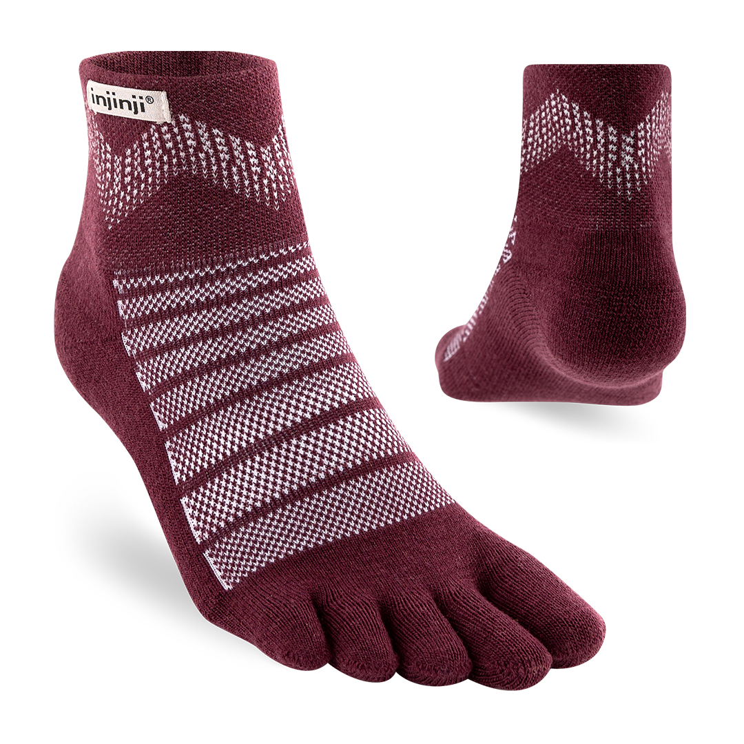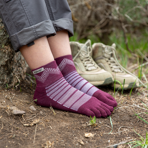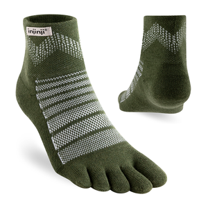 The Outdoor series was designed for running and hiking on rugged trails in unpredictable weather. Midweight cushioning adds comfort to every stride and a breathable mesh knit at the top of the foot provides added ventilation. The mini-crew height sits above the ankle, sealing out trail debris. By pairing the natural advantages of Merino wool with the trusted benefits of Injinji toesocks, the Outdoor socks are more comfortable and functional than ever before.