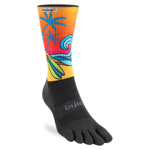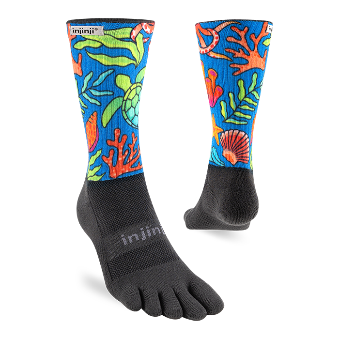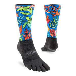 Built upon the Trail Midweight Crew silhouette, these cushioned running toesocks prevent blisters and utilize COOLMAX® EcoMade fibers to wick away moisture. The crew height seals out trail debris. A wider fit distinguishes these from our Women’s socks.