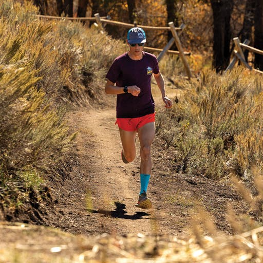 Run and hike on technical terrain in cushioned trail socks that seal out debris.